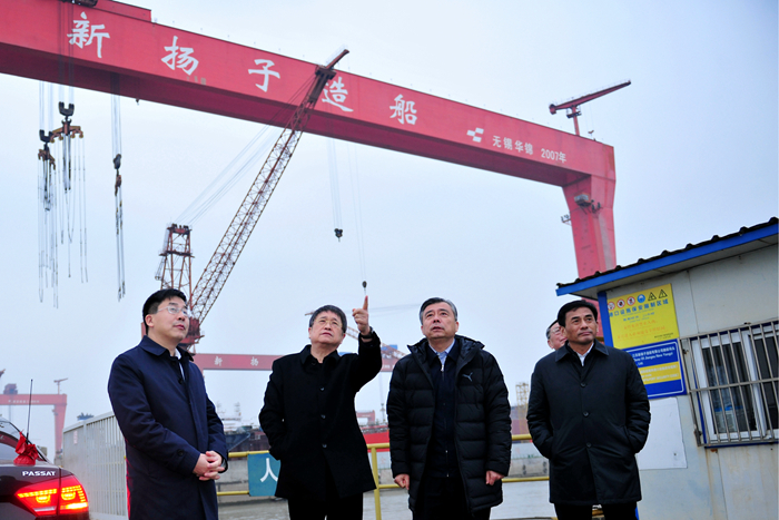 隨后,在任元林董事長的陪同下,閻主席一行實地參觀了我集團新?lián)P子造船。閻主席指出,我省海洋工程裝備產(chǎn)業(yè)鏈發(fā)展前景良好,在全國有重要的地位。揚子江船業(yè)作為江蘇造船骨干企業(yè),為江蘇造船產(chǎn)業(yè)構(gòu)建自主可控的現(xiàn)代產(chǎn)業(yè)體系作出了重大貢獻,希望企業(yè)繼續(xù)聚焦主業(yè),在關(guān)鍵核心技術(shù)、工藝上自主可控,并向高端延伸,在細(xì)分領(lǐng)域里做成領(lǐng)跑行業(yè)的龍頭企業(yè),同時要以科技創(chuàng)新為抓手,積極推進產(chǎn)學(xué)研合作,與科研院所、行業(yè)協(xié)會、智庫形成合力,實現(xiàn)海工裝備和高技術(shù)船舶產(chǎn)業(yè)鏈高質(zhì)量發(fā)展。