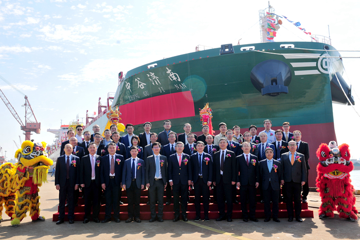On the day of naming, the delivery ceremony of "ZhongguJinan" was successfully completed under the witness of many guests. Mr.Jia Hao, Head of Shipping Finance Division of ICBC Financial Leasing Co., Ltd.,Mr. Xia Guoqing, Vice President of Zhonggu Shipping Group, and Mr. Zhang Tao,Deputy General Manager of our group, respectively signed the delivery documentson behalf of all parties.