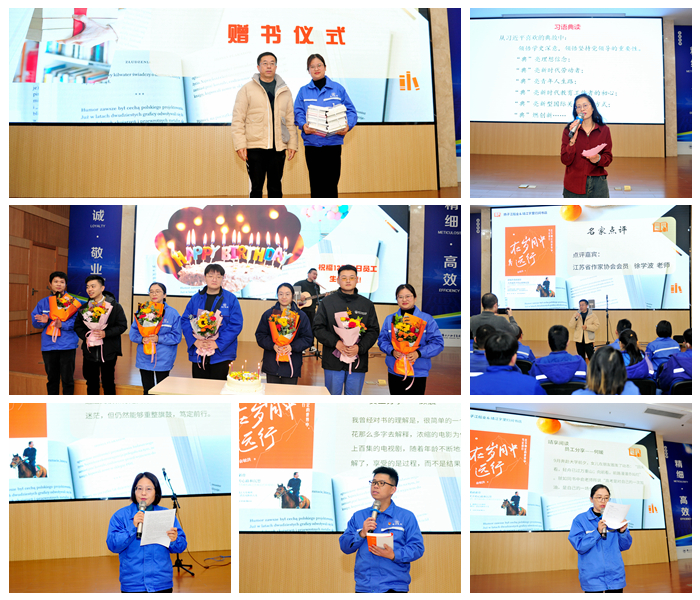 活動中,高級歷史老師、國家二級心理咨詢師姚北平帶領(lǐng)大家進(jìn)行了《心有大我 強(qiáng)企有我 至誠報國》為主題的“習(xí)語典讀”分享。來自集團(tuán)綜合管理部的多位員工,分享了近期閱讀《在歲月中遠(yuǎn)行》一書后,關(guān)于行走、關(guān)于閱讀和愛的意義,并結(jié)合生活、工作實際暢談收獲感悟。江蘇省作家協(xié)會會員徐學(xué)波老師代表市委宣傳部,向我司捐贈一批圖書,助力企業(yè)充實職工書屋、推廣閱讀角等陣地建設(shè),更好地搭建閱讀交流平臺。結(jié)合大家的讀書分享,徐老師還作了延伸點評。