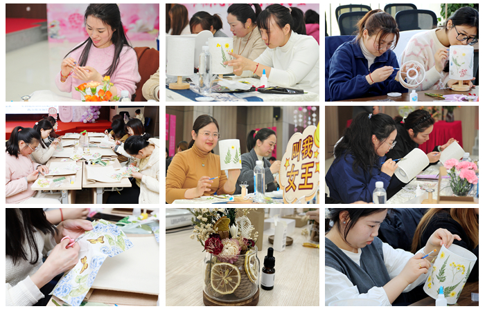 巧手匠心,創(chuàng)意無限。女職工們在專業(yè)老師的指導(dǎo)下,親手制作了精美的古法壓花臺燈、蝶古巴特手工包和植物香薰。大家充分發(fā)揮創(chuàng)意,制作出獨(dú)一無二的作品。手工制作不僅讓大家體驗(yàn)到了動手的樂趣,也增進(jìn)了同事之間的交流與互動?;顒咏Y(jié)束后,大家拿著自己親手制作的作品,臉上洋溢著滿足的笑容。