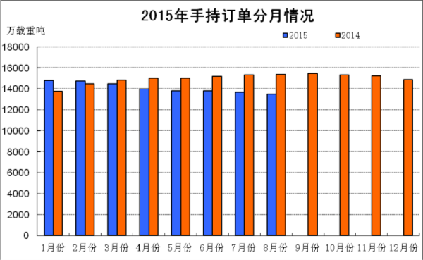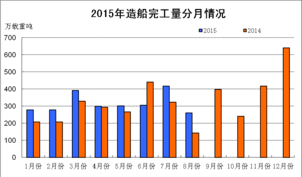 2015年1~8月份船舶工業(yè)經(jīng)濟(jì)運行情況