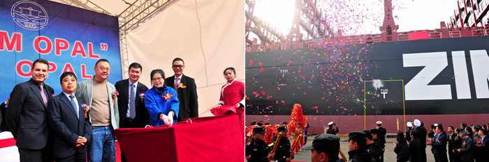 1月17日,我集團(tuán)與SEASPAN、ZIM公司共同為新船舉行了隆重的命名儀式。命名人蔡霞女士,以星(ZIM)上海總經(jīng)理李敬東先生,SEASPAN首席商務(wù)官李堃先生,SEASPAN資產(chǎn)管理部副總裁J.J. Meyer先生,SEASPAN資產(chǎn)管理部項(xiàng)目經(jīng)理蘇小華先生,以及我集團(tuán)董事長(zhǎng)任樂(lè)天先生、集團(tuán)副總經(jīng)理兼新?lián)P子造船總經(jīng)理杜成忠先生、集團(tuán)副總經(jīng)理周科偉先生、集團(tuán)副總經(jīng)理吉宏飛先生、新?lián)P子造船副總經(jīng)理倪榮先生等領(lǐng)導(dǎo)和嘉賓共同出席了命名儀式。